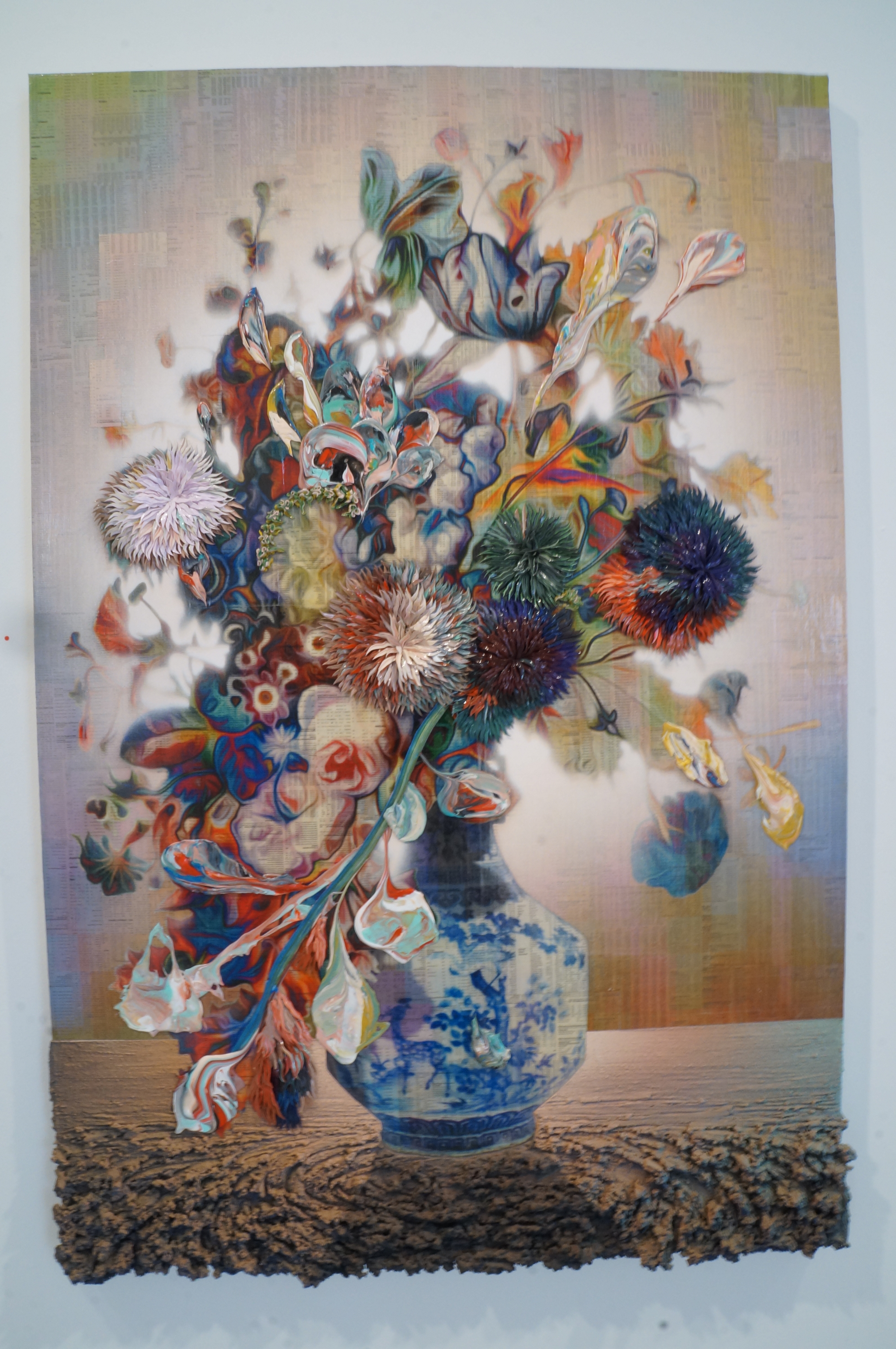 Cheung replied on the topic of catastrophe and apocalypse, expressing his interest in the fragility of mortality and the futility of materialism. He expressed his idea of how the flowers symbolically stood for virtue and how that played against their effect of Holland as a country.