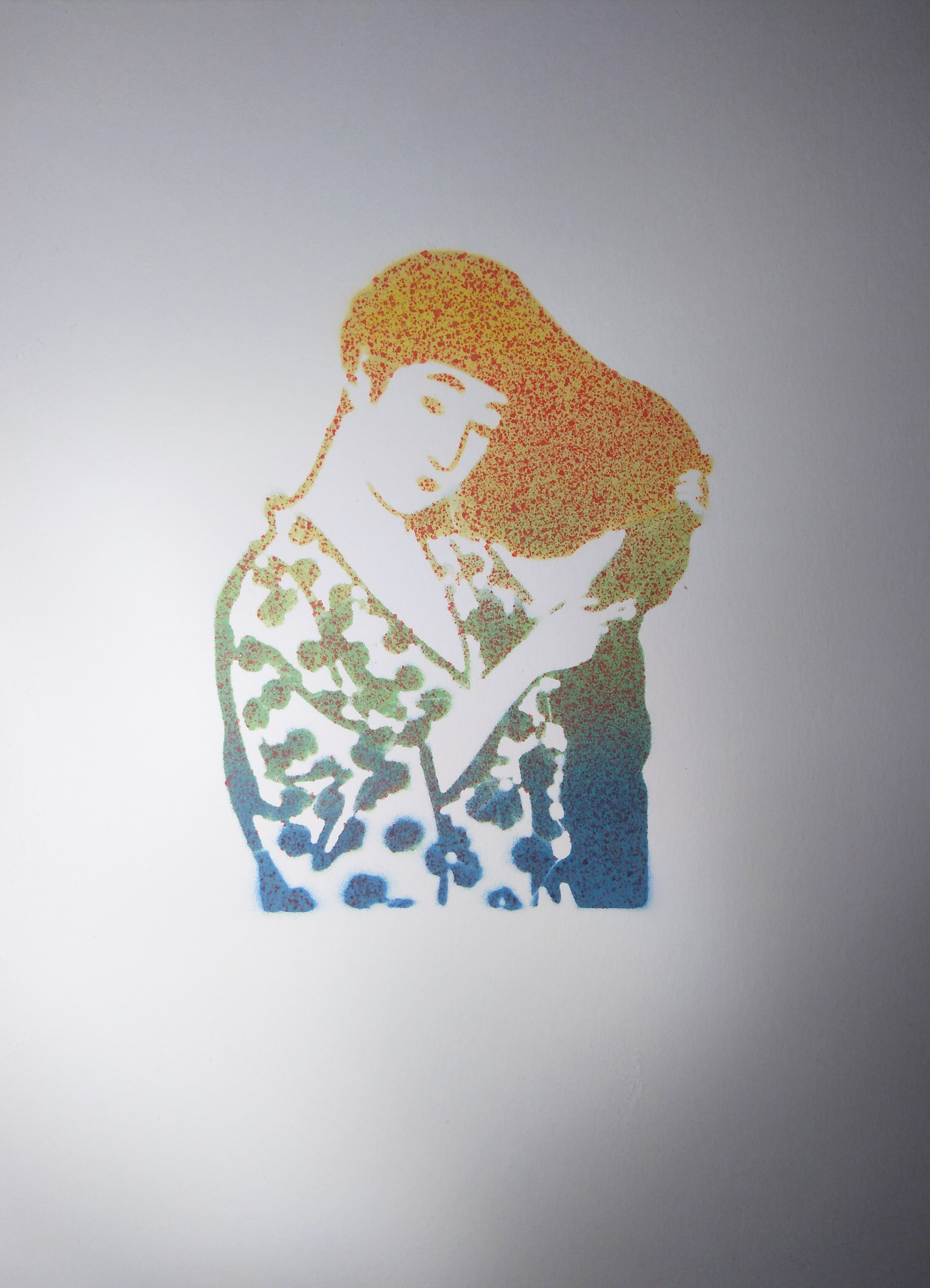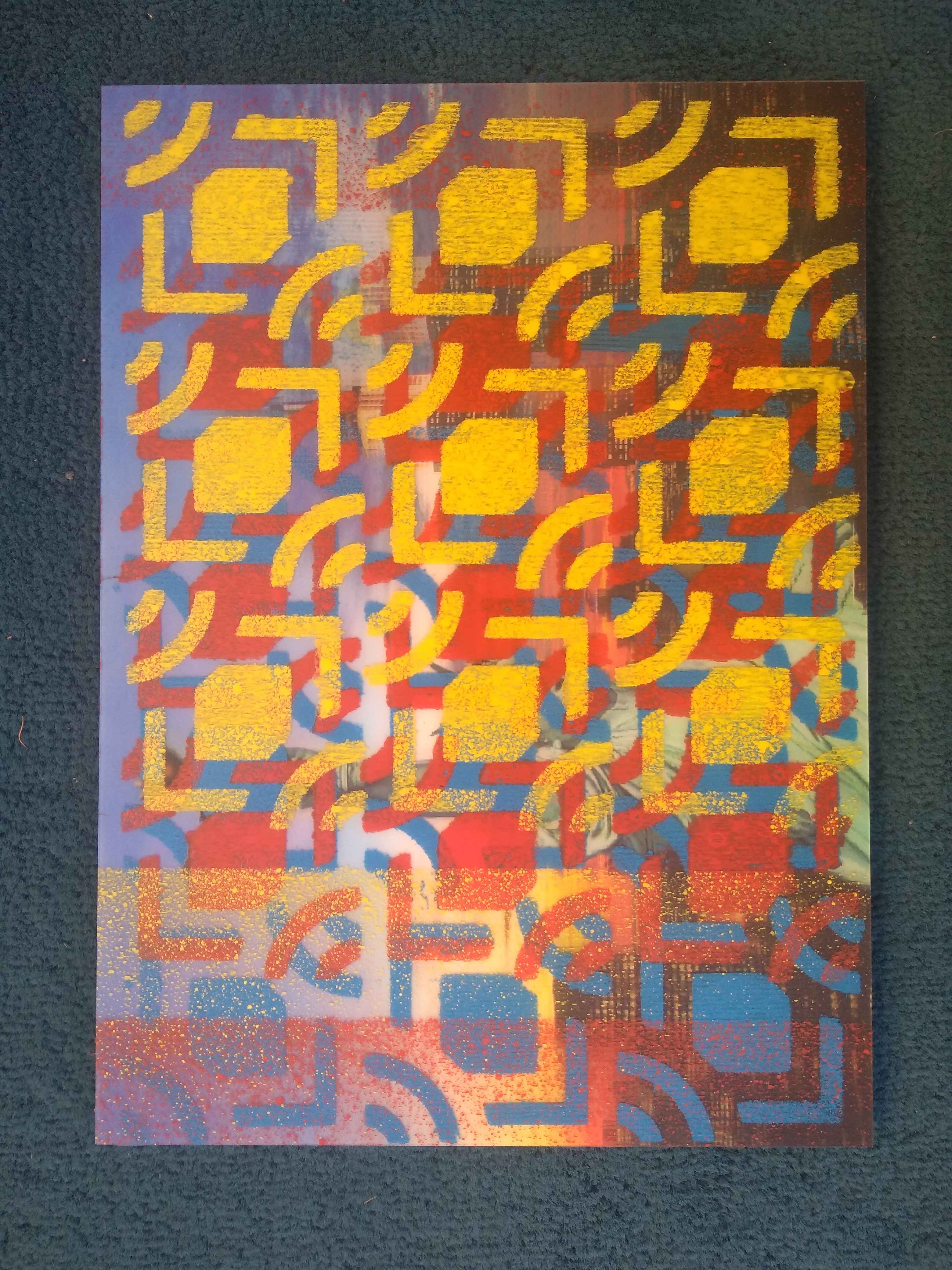 I started to 3D print stencils and spray paint them because I spoke to a framer/gallerist and he didn’t seem keen on my attempts at brushwork towards the end of last year. In response I decided to try making something easy for me to create and more commercially appealing so I can continue to sit on y arse all day, but this time make some money from it and justify my calling myself an artist, even if that means conversely eroding what I wanted to be as an artist. But I’m into the prints and I’m making more and more complex compositions now and putting serious effort into creating stencils and trial-and-erroring my way through creating good colour combinations.