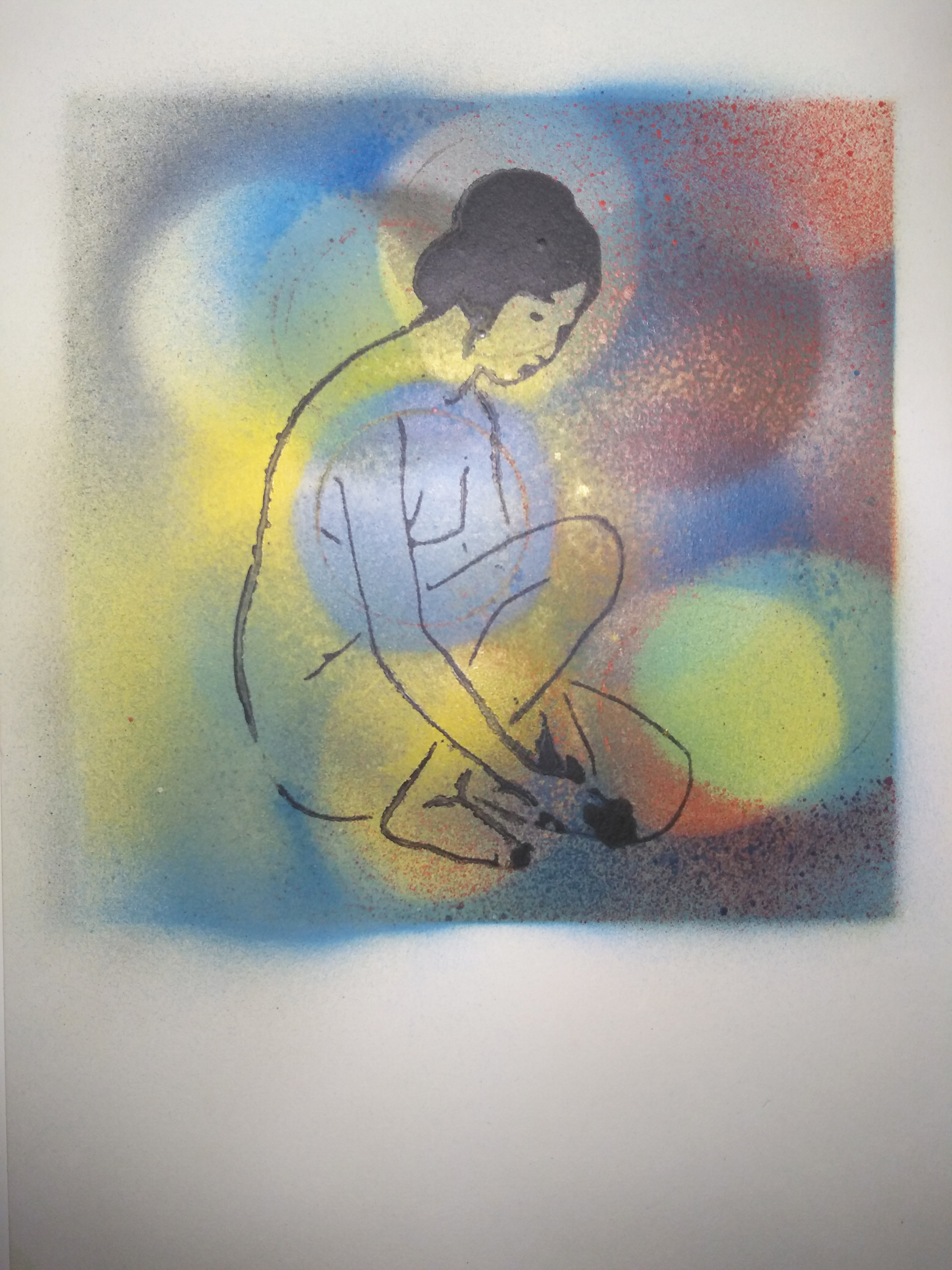 Again from the sleepless night. I decided to just pattern a stencil together with different colours, but because I didn’t wait for them to dry, it dragged paint around to the other areas of the image. So I wrote the phrase across the middle and named it as such just as a little poke that really I messed up when creating the image, but that nowadays there is to some people a sense that there’s nothing wrong with them and the world must accept them rather than they should try in some way to better themselves. I’m very much prey to this type of thinking, but I’m trying not to be, so does that count?