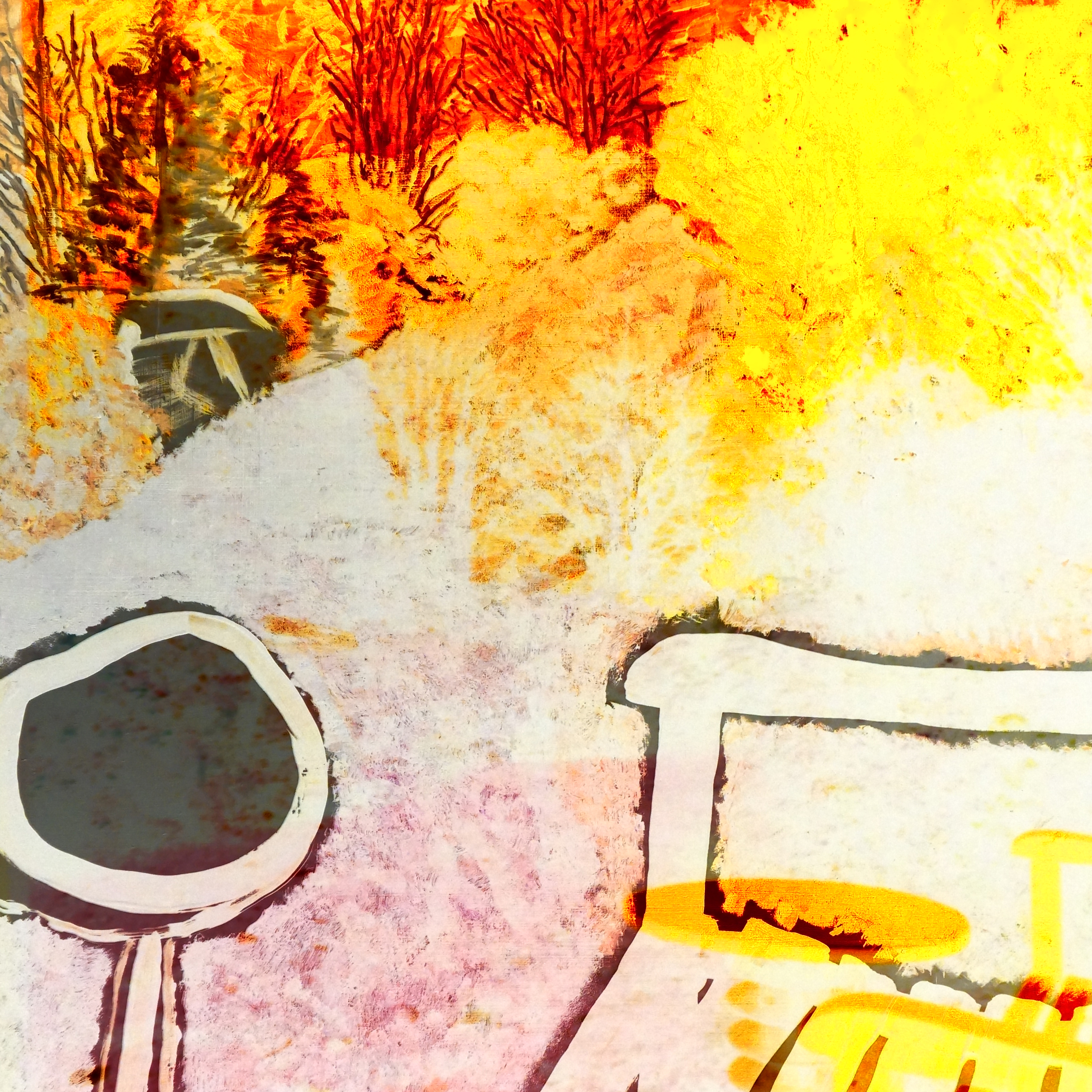 This image is a digital edit of the below painting of the garden. I loe the colours that it gives out and the ghostly garden from projecting an image of the garden onto the painting when I took the photo.