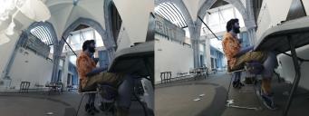 OpenCV, before passing to Ultralytics’ Yolov8 object detection model, with the Ultralytics Python library. The output of this is passed to a string that adds ‘as seen by an octopus’, to make a prompt such as ‘a person and a phone as seen by an octopus’. This prompt and the original 2 images stitched together are sent to Stable Diffusion, which outputs an abstract ‘minds eye’ image.